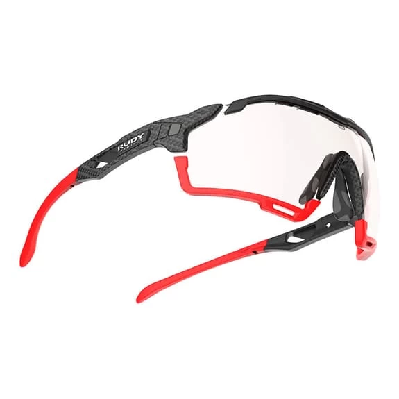 Rudy Project Cutline glasses have a wide shield lens design, removable rubber bumpers and an intuitive interchangeable lens system, making them a premium model of the brand. They are easily customized thanks to the variants in terms of frames, lenses and accessories. Combining a rimless lens with all Rudy comfort technologies such as flexible, adjustable temple and bridge, and lightweight construction, the Cutline helps improve performance during sport, especially in road cycling and triathlon.