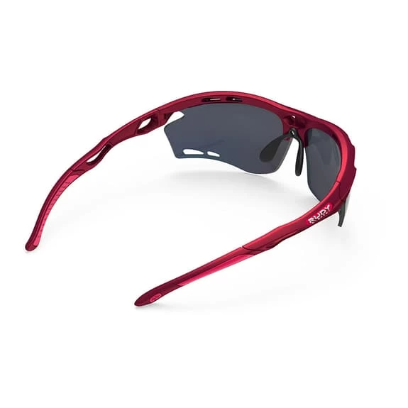 Rudy Project Propulse glasses are specifically designed for running. Thanks to their ultra-lightweight wrap-around geometry, the Propulse offer a perfect and natural compression fit without any disturbing pressure on the head. The end result is an extremely comfortable and stable pair of glasses, with integrated Hi-Grip temple tips, massive vents in the front frame, lenses and temples to efficiently prevent fogging. Wide lenses offer improved eye protection that minimizes the risk of wear and tear and provides a deep field of vision.